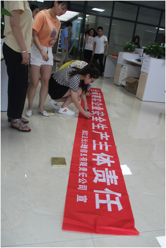 6月16日,公司积极动员,宣传安全生产月活动及主题,组织部分一线员工在“全面落实企业安全生产主体责任”主题横幅上签名。